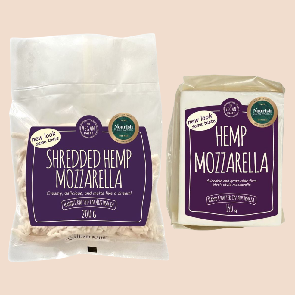 Nut free and soy free! Made with organic hemp seeds this sliceable, grateable, firm block-style Mozzarella is allergy free and perfect for melting, shredding, and using in sandwiches.
